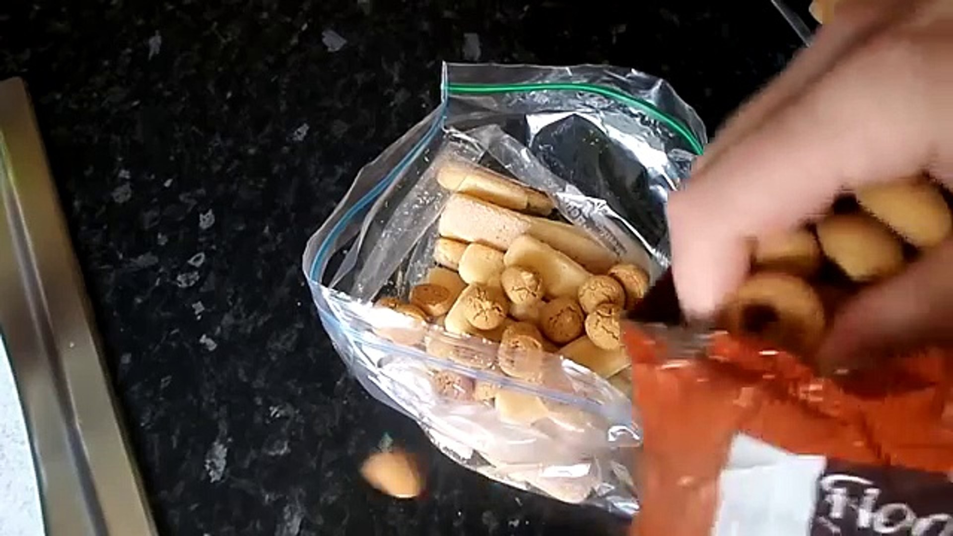 Löffelbiskuits in einen gefrierbeutel geben, gut verschließen und mit einem teigroller fein zerkleinern.